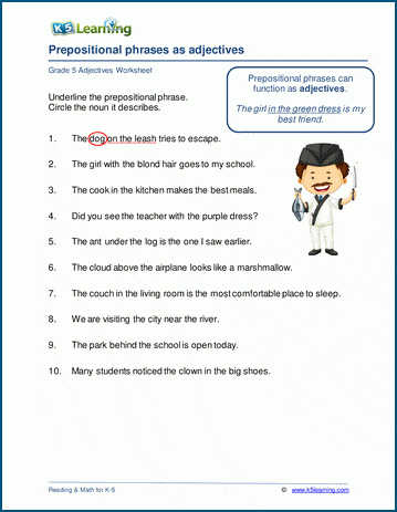 Adjectival prepositional phrases provide additional meaning about a noun (or element acting as a noun) such as quantity or amount, attributes or characteristics. Examples of prepositional phrases as adjective phrases. The key to writing success = chegg® writing. John is walking with the man in the red coat. Park in the lot with fewer cars. Double prepositions are two simple prepositions used together, often indicating direction. A prepositional phrase contains a preposition at the beginning and conducts the function of an adjective, adverb or noun. Remember the following rules for prepositional phrases and you will find that using them becomes much easier. Phrase prepositions (or prepositional phrases) include a preposition, an object, and the object's modifier. A prepositional phrase is simply a group of words that consists of a preposition and the object of the preposition. • green = the entire prepositional phrase • green italics with underline = the preposition • green bold = the object of the preposition • red = the word or words that the prepositional phrase modifies The pictures of earth taken from space are incredible. Information such as place, time, date, and even descriptive information.